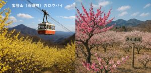 - 宝登山(長瀞町)のロウバイ:2月になると、宝登山山頂付近ではロウバイが満開になり、あたり一面に甘い香りが漂います。黄金色の小さな花々が織りなす景色は、見ているだけで心が穏やかになります。ロープウェイを使えば、楽に山頂までアクセスでき、足元に不安がある方も安心です。